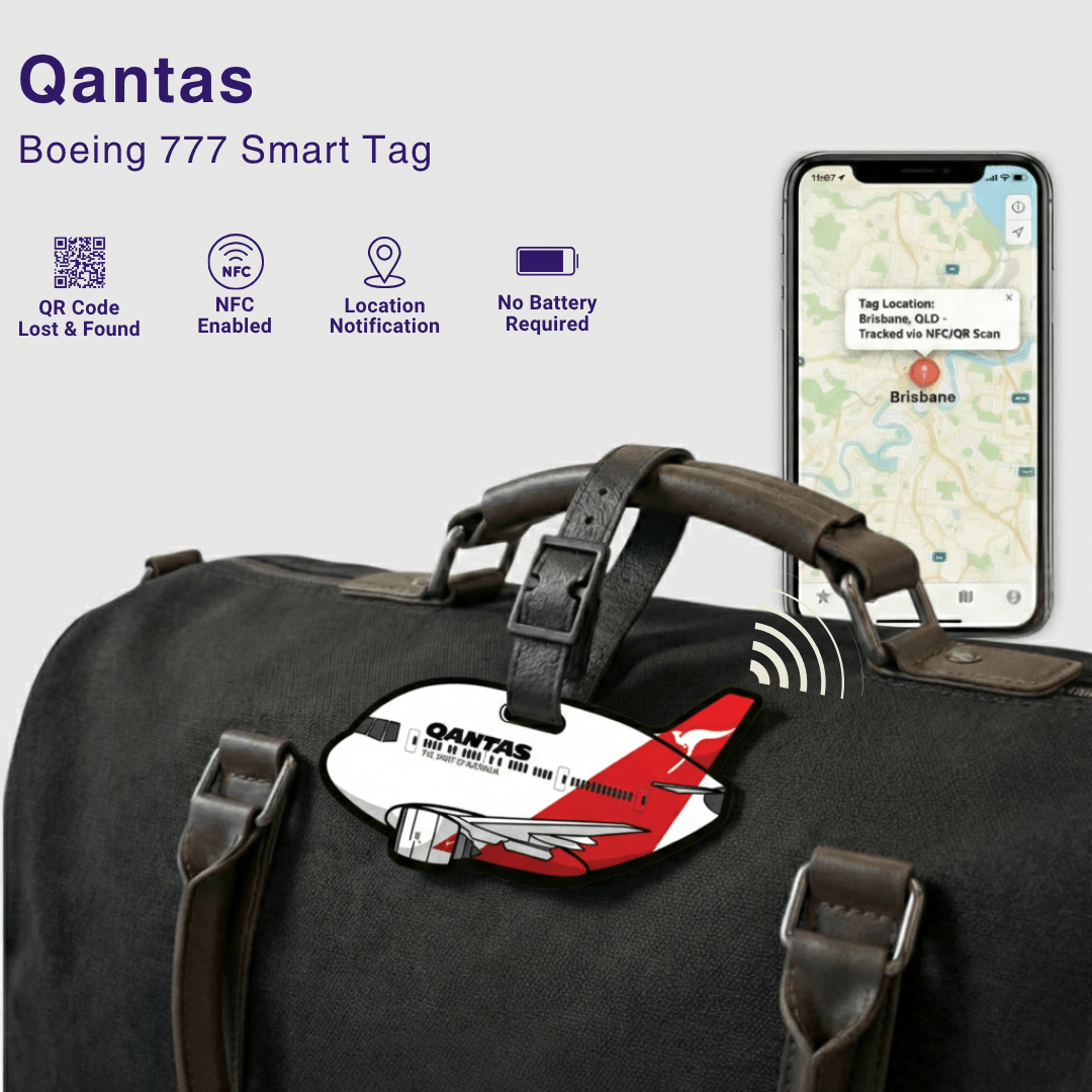 Qantas Airways Boeing 777 Smart Luggage Tag – NFC & QR Tracking 🧳✈️